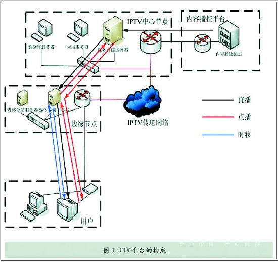 圖1中采用的是兩級(jí)架構(gòu),實(shí)際部署中,IPTV平臺(tái)可以采用多級(jí)架構(gòu),以減輕IPTV中心平臺(tái)的壓力,否則所有的時(shí)移電視、點(diǎn)播節(jié)目全部存放在中心平臺(tái)會(huì)嚴(yán)重影響用戶(hù)的收看質(zhì)量。