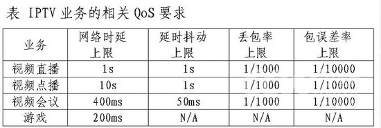 IPTV業(yè)務(wù)對(duì)時(shí)延也有一定的要求(參見(jiàn)附表):