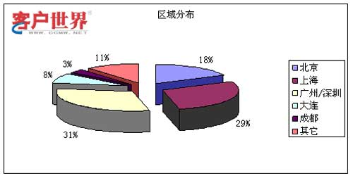 截至到2006年底,中國呼叫中心產(chǎn)業(yè)擁有呼叫中心座席總數(shù)24.8萬個,市場總規(guī)模達到308.9億元人民幣,比2005年底分別增長15%和21%。從地區(qū)來看,目前中國的呼叫中心已經(jīng)遍布全國,不僅在早期集中發(fā)展起來的上海、北京、廣州、大連、青島、天津,其它的省市(尤其包括西安、成都等內(nèi)地城市)呼叫中心都同步發(fā)展;以大連、成都、西安為代表的“中國服務(wù)外包基地城市”在呼叫中心業(yè)務(wù)發(fā)展上異軍突起,成長非常迅速,進而帶動了西部省份的發(fā)展。總體看,中國呼叫中心的區(qū)域發(fā)展格局更為均衡合理(見圖一)。