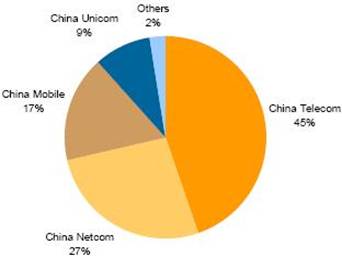 圖2:2007年中國運營商Wi-Fi熱點市場份額 (占單位布署量的百分比)