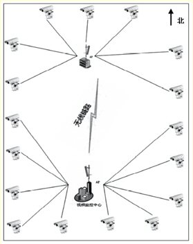 例如,監(jiān)控范圍為一個(gè)長800米、寬600米的小區(qū),小區(qū)監(jiān)控中心位置在正南位置,正北位置的小區(qū)會所匯集南邊的視頻圖像,經(jīng)匯集中心AP向監(jiān)控中心傳送。