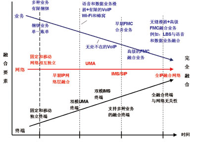 從實現(xiàn)過程來看,運營商一般都以業(yè)務捆綁為切入點,然后逐步實現(xiàn)業(yè)務融合和終端融合。