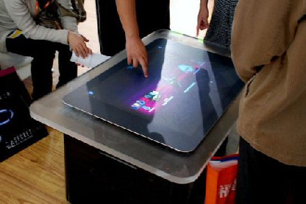 本次展會,微軟除了展示W(wǎng)indows Live應(yīng)用,以及Windows Mobile手機操作系統(tǒng)以外,還重點展示了Surface全觸摸概念電腦。其具有一個嵌在桌面內(nèi)的30英寸水平顯示器,用戶可以直接用手在上面點餐、玩游戲、畫畫、點歌、查詢地圖等等。