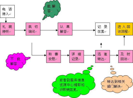 以上在總的呼叫流程基本程序下結(jié)合各項呼叫業(yè)務的特點設計了各項呼叫業(yè)務的呼叫程序。在呼叫過程和應答過程中,話務人員需要具備良好的文化素質(zhì)和個人修養(yǎng),這需要公司管理層進行經(jīng)常性的和深層次的培訓。在話務人員的招聘與選拔上應當注意其個人的性格特點和交流能力。