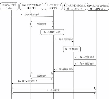 。5)CDN媒體存儲功能實體(CDN-MF):負(fù)責(zé)向IPTV業(yè)務(wù)用戶傳送媒體內(nèi)容。