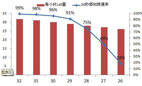 呼叫中心指標(biāo)體系中最為基礎(chǔ)最為關(guān)鍵的就是接通率指標(biāo)了,下面,本文重點將呼叫中心部分與接通率相關(guān)的運(yùn)營數(shù)據(jù)轉(zhuǎn)化成圖表,用erlang-C(國際標(biāo)準(zhǔn)的呼叫中心管理軟件)的計算數(shù)據(jù)表示管理和資源投入對于呼叫中心生產(chǎn)的巨大影響。