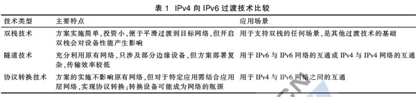 IPv6協(xié)議并非是對IPv4協(xié)議的簡單升級,報文頭部特征和地址分配機制等方面的不同使得IPv6協(xié)議缺乏對IPv4協(xié)議的后向兼容性。IPv6的引入和應用是一個系統(tǒng)工程,不僅涉及終端升級、網(wǎng)絡改造、平臺遷移和用戶認知的提升,還涉及技術(shù)標準與IP地址資源分配管理等一系列內(nèi)容,因此IPv6的引入不可能一蹴而就,IPv4與IPv6將長期共存,IPv6的引入過程將是IPv4向IPv6平穩(wěn)過渡的過程。