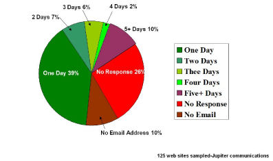 該報告進一步總結到,60%的網站客戶希望更多互動但許多電子商務企業(yè)無法回應電子郵件且不能提供足夠的電話支持。也有很多電子商務企業(yè)提供電子郵件支持,比如說etoys,但對于如潮水般洶涌而來的電子郵件聯(lián)絡他們顯然沒有什么準備以至于處理結果符合客戶預期的郵件少之又少。如果處理的好