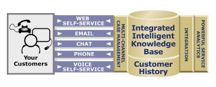 Technologies”是一家非常著名的多接觸點呼叫中心供應商,這家公司建議采用“通用事故”追蹤機制,它強調報表和歷史紀錄必須作為任何一個多接觸點聯(lián)絡中心不可或缺的組成部分。“Rightnow”提供的以下插圖很清楚地向我們展示了多渠道知識庫集成是如何被強制執(zhí)行的。