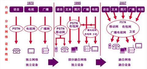 2010年1月13日,國務院常務會議決定加快推進電信網(wǎng)、廣播電視網(wǎng)和互聯(lián)網(wǎng)三網(wǎng)融合。5年內(nèi)全面實現(xiàn)電信網(wǎng)、廣播電視網(wǎng)和互聯(lián)網(wǎng)三網(wǎng)融合,并明確提出階段性目標和重點工作。