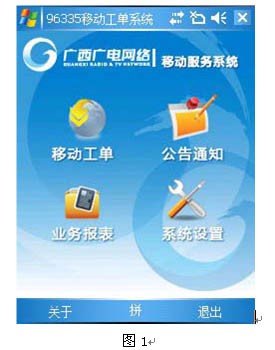 移動(dòng)工單系統(tǒng)是數(shù)字電視客戶呼叫中心平臺系統(tǒng)的延伸,它結(jié)合最新的網(wǎng)絡(luò)移動(dòng)技術(shù),實(shí)現(xiàn)數(shù)字電視服務(wù)工單分派業(yè)務(wù)的自動(dòng)流轉(zhuǎn)和實(shí)時(shí)流轉(zhuǎn),各地市維護(hù)站的服務(wù)工作人員通過智能手機(jī)終端,實(shí)時(shí)獲取工作任務(wù)、計(jì)劃安排,進(jìn)行業(yè)務(wù)處理,通過移動(dòng)網(wǎng)絡(luò)查詢客戶信息、查詢用戶產(chǎn)品訂購資料,上報(bào)處理結(jié)果和用戶反饋信息,通過移動(dòng)網(wǎng)絡(luò)提交到管理部門,管理層能及時(shí)的掌握服務(wù)進(jìn)展情況,并能隨時(shí)做出決策和指揮,真正實(shí)現(xiàn)對用戶最快速、有效的服務(wù)需求響應(yīng),保證了服務(wù)質(zhì)量和用戶滿意度,提升了數(shù)字電視的服務(wù)水平與服務(wù)檔次。其界面如圖1所示。