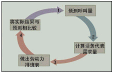 預測呼叫量是第一步,是創(chuàng)建呼叫中心呼叫量預測的方法,這種預測建立在對歷史呼叫量和當前呼叫量數(shù)據分析的基礎上。根據第一步的結論,計算話務代表需求量,以及在每天不同時段座席代表的需要量。然后,可做出勞動力排班表,創(chuàng)建一個與需求相匹配的勞動力上班時間表。最后一步是將實際結果與預測相比較。