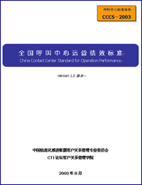 《全國呼叫中心運營績效標準》(China Contact Center Standard for Operation Performance,簡稱"CCCS-OP-2003標準"),是由CTI論壇客戶關系管理學院負責策劃和起草,并聯(lián)合該領域內具有代表性的客戶服務提供商、運營商一起同心協(xié)力,站在行業(yè)發(fā)展的最前沿,共同創(chuàng)建的客戶服務及呼叫中心行業(yè)運營標準,并最終由信息產業(yè)部中國信息化推進聯(lián)盟客戶關系管理專業(yè)委員會發(fā)布實施的行業(yè)標準。該標準填補了國內在該領域的一項空白,并將帶動整個行業(yè)不斷地向前發(fā)展。