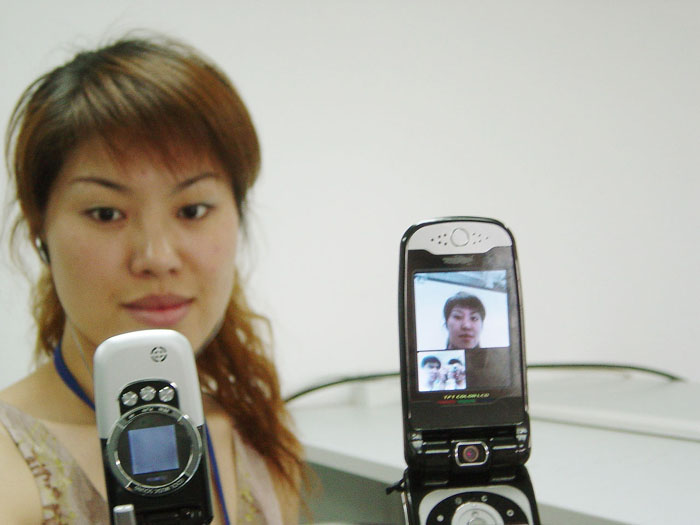可視電話作為體現(xiàn) 3G 優(yōu)勢的典型業(yè)務(wù),必將成為 3G 的殺手級應(yīng)用。其類似目前的網(wǎng)絡(luò)視頻,通話雙方均可通過可視電話功能在手機(jī)屏幕上看到彼此的通話場景,但畫面較網(wǎng)絡(luò)視頻更為流暢、清晰。(圖為基于展訊 SC8800 系列芯片平臺的可視電話手機(jī)通話中,大圖為對方場景,小圖為自身場景)據(jù)展訊通信 CTO 陳大同博士介紹,早在3月初,展訊 SC8800 系列芯片平臺就已實(shí)現(xiàn)了雙向同步視音頻傳輸業(yè)務(wù),在此基礎(chǔ)上又經(jīng)過2個(gè)月的調(diào)試,直至該解決方案完全成熟,通話畫面穩(wěn)定、清晰、流暢,展訊才正式將其推入市場。毋庸置疑,這樣的應(yīng)用方案必將為其客戶的終端產(chǎn)品帶來更多的市場競爭力。