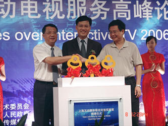 市科委主任李逸平在講話中表示,作為國(guó)家數(shù)字電視先行先試城市,上海高度重視數(shù)字電視互動(dòng)技術(shù)的發(fā)展。“上;(dòng)媒體聯(lián)合開(kāi)放實(shí)驗(yàn)室”成立,是推進(jìn)上;(dòng)電視產(chǎn)業(yè)化發(fā)展、探索“三網(wǎng)融合”發(fā)展的又一舉措。國(guó)家重大專項(xiàng)“高性能寬帶信息網(wǎng)”落地上海,率先開(kāi)通了包括1路高清和116路標(biāo)清的互動(dòng)電視服務(wù),推動(dòng)互動(dòng)電視在長(zhǎng)寧、浦東、閘北等地試驗(yàn)示范,讓互動(dòng)電視不再高不可攀,而是走入了尋常百姓家。