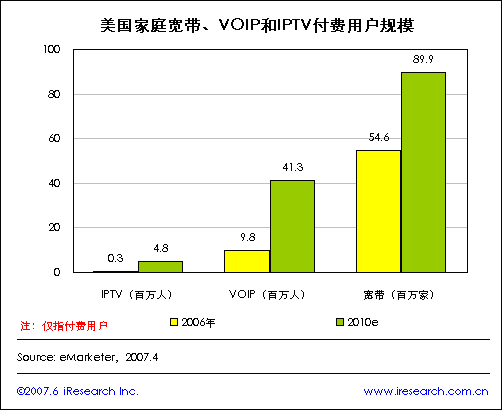 iResearch:美國(guó)家庭寬帶、VOIP和IPTV付費(fèi)用戶規(guī)模