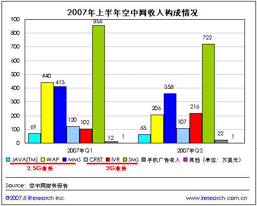對此,艾瑞認(rèn)為,空中網(wǎng)Q2業(yè)績下滑主要原因是由于中國移動2007年5月開始實(shí)施一系列新政策,包括當(dāng)手機(jī)用戶下載WAP產(chǎn)品時(shí)顯示GPRS服務(wù)費(fèi)用提醒,以及將空中網(wǎng)和其它第三方WAP服務(wù)提供商從中國移動定制手機(jī)內(nèi)置菜單中刪除。