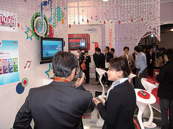 在通信展上,中國移動在展場核心區(qū)展示了面向2008年奧運會的奧運無線業(yè)務(wù)和全曲下載“音樂隨身聽”,中國聯(lián)通則重點展示了其最具特色的整首音樂下載業(yè)務(wù),吸引了大批觀眾。許多觀眾還在中國移動和中國聯(lián)通無線音樂展臺前,現(xiàn)場聆聽各種動聽的歌曲,體驗無線音樂的魅力?梢哉f,手機音樂成為手機娛樂業(yè)務(wù)中最受人們關(guān)注的亮點。
