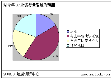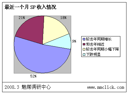 最近公布的空中網(wǎng)財務(wù)報表的數(shù)據(jù)顯示空中網(wǎng)總收入環(huán)比增長,結(jié)合之前廣東移動推出:廣東移動向重服務(wù)轉(zhuǎn)變 首推“6+1”服務(wù),SP行業(yè)可以說是暖風(fēng)頻吹。魅媒無線行業(yè)調(diào)研中心隨機從3月3日到3月5日隨記電話采訪50多家全網(wǎng)以及廣東省網(wǎng)SP公司相關(guān)負責(zé)人,對最近的SP行業(yè)的政策調(diào)整進行調(diào)查,有以下的數(shù)據(jù):