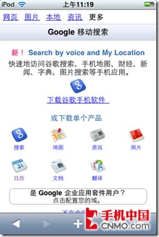 Google for iPhone的界面針對(duì)iPhone/ipod touch下的safari做了優(yōu)化,富客戶端在手持設(shè)備上,無(wú)論界面還是速度都達(dá)到近乎完美的地步。