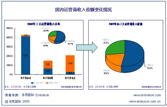 作為2008年度電信業(yè)內(nèi)最大的兩件大事,重組和3G牌照的發(fā)放不僅拉開了全業(yè)務(wù)競爭的序幕,而且為國內(nèi)電信市場的競爭注入了新的活力,一方面提供了讓電信業(yè)競爭逐漸趨于平衡的發(fā)展契機(jī),從另一方面也同時帶來了大量的消費需求。