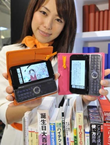 日本第二大電信服務(wù)商KDDI與東芝合作推出以“Biblio”命名的手機(jī),以電子書(shū)瀏覽器作為最大賣點(diǎn)。該機(jī)內(nèi)建7GB內(nèi)存,3.5吋觸摸式液晶顯示屏,外型及包裝設(shè)計(jì)都和Amazon Kindle相似,配備WIFI、510萬(wàn)像素鏡頭及電子辭典功能。