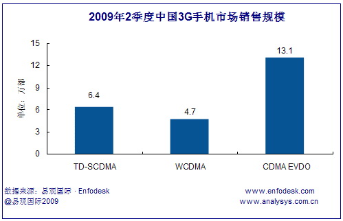 2009年第2季度中國3G手機市場整體銷量達到24.2萬