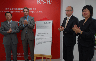 12月4日,博世和西門子家電成都呼叫中心正式成立。這是繼1999年11月南京呼叫中心成立以來,博世和西門子家電在華建立的第二個(gè)、也是西部地區(qū)的首個(gè)專業(yè)化呼叫中心。博西家電(中國)公司副總裁兼首席財(cái)務(wù)官魏博先生、博世和西門子家電集團(tuán)德國總部客戶服務(wù)部國際部經(jīng)理郭伯溫先生、博西華家用電器服務(wù)江蘇有限公司總經(jīng)理陳輝先生及媒體記者等共同出席了揭牌儀式。