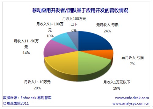 易觀國際(Analysys International)分析認(rèn)為應(yīng)用開發(fā)者難以獲取盈利分成的主要原因在于用戶對應(yīng)用本身沒有付費下載習(xí)慣,應(yīng)用商店缺少對應(yīng)用的推廣,但應(yīng)用開發(fā)者難以盈利也和移動應(yīng)用同質(zhì)化嚴(yán)重,難以被用戶認(rèn)可本身強相關(guān)。