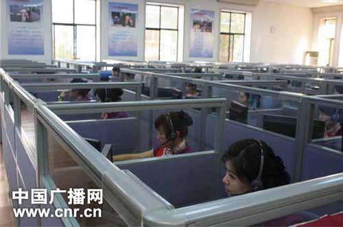 圖:熱線大廳,工作人員4小時(shí)換一次班,每人每班要接上百個(gè)電話