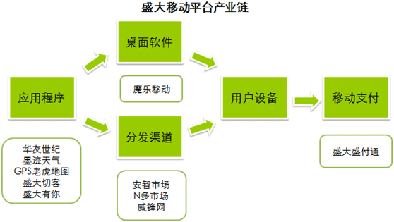 盛大大力投資威鋒、安智、N多等渠道,是為了做內(nèi)容資源鋪路,保證了客戶端在應用分發(fā)渠道上的正常推廣,除此之外還能吸引更多的開發(fā)者首發(fā)軟件,當應用軟件規(guī)模龐大后,配合優(yōu)秀的分發(fā)推廣渠道,讓核心開發(fā)者依賴于"盛大模式",達到良性的產(chǎn)業(yè)鏈。盛大通過開發(fā)LBS產(chǎn)品切客、短信增強工具"有你"、推他等移動產(chǎn)品,加之在2010-2011年通過投資、收購的產(chǎn)品至少超過20款,盛大希望形成自己的產(chǎn)業(yè)價值鏈,以安智等渠道推廣產(chǎn)品,以產(chǎn)品推廣內(nèi)容,再做到收益?梢钥吹,這樣的布局策略,已經(jīng)逐步形成了自己良好產(chǎn)業(yè)鏈條。