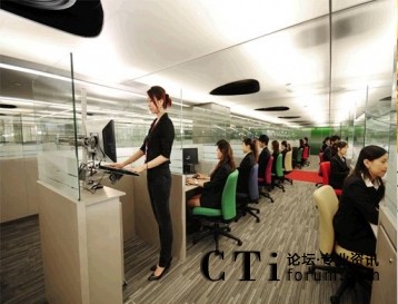 很多辦公室都是把地臺升高的設(shè)計,“如果我們把整個的地方,提升地臺的話,這個空間就更小了,所以我們選擇的是高低地臺的設(shè)計! 伍上果介紹,另外一個就是聲音管理的問題,“因為有一千個同事一起當(dāng)值都用電話,跟我們的顧客溝通,他們彼此說話的聲音,肯定會互相影響,于是我們就采用了吸聲的天花系統(tǒng)!