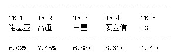 第一階段;湯森路透將每一項(xiàng)專利同歐洲電信標(biāo)準(zhǔn)協(xié)會(huì)截至2011年11月18日的LTE規(guī)范進(jìn)行比較,確定專利的重要性。第二階段涉及先有技術(shù)檢查,即審查在美國(guó)和歐洲申請(qǐng)專利過程中的先有技術(shù)參考文獻(xiàn)。湯森路透利用先有技術(shù)參考文獻(xiàn)評(píng)估每項(xiàng)專利的新穎性并給出新穎性評(píng)級(jí)。湯森路透發(fā)現(xiàn),擁有屬于LTE標(biāo)準(zhǔn)范疇的基本與新穎專利的領(lǐng)先廠商有諾基亞、高通、三星、愛立信和LG。結(jié)果如下: