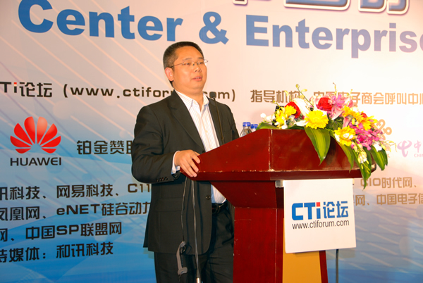 圖為:中國(guó)電子商會(huì)呼叫中心與客戶關(guān)系管理專業(yè)委員會(huì)秘書(shū)長(zhǎng)、 CTI論壇總經(jīng)理秦克旋