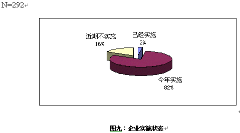 對(duì)大多數(shù)企業(yè)來(lái)說(shuō),對(duì)CRM還處于關(guān)注階段,只有7家企業(yè)表示已經(jīng)開始實(shí)施,在的電話訪問中,了解到這7家企業(yè)的實(shí)施的主要是在渠道管理和客戶呼叫中心等方面,但表示今年會(huì)開始實(shí)施的卻超過(guò)8成。