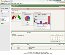 布局為上下型,頁(yè)面的模塊化構(gòu)成感覺(jué)很明顯。首頁(yè)上的模塊包括:最近安排、電子郵件提醒、任務(wù)提醒、日歷和商機(jī)階段的統(tǒng)計(jì)圖。也提供了在系統(tǒng)中新建數(shù)據(jù)的快捷入口,和最近察看數(shù)據(jù)的提示。另外,直接新建聯(lián)系人也被作為一個(gè)重要功能放置在首頁(yè)。