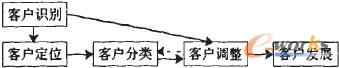 筆者認(rèn)為,客戶識別是貫穿整個客戶關(guān)系管理運作流程的一條主線,也是企業(yè)判斷是否進行以及如何進行客戶獲取、客戶保持、關(guān)系終止活動的根本依據(jù)。這里筆者把客戶識別可以分為定位客戶、客戶分類、調(diào)整客戶和發(fā)展客戶幾個步驟(見圖1)。
