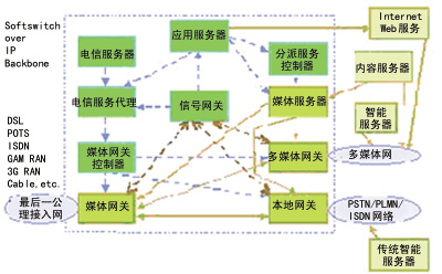E1、DSL、Ethernet到無線接入技術(shù)GSM/GPRS、PHS、W-CDMA以至未來的接入技術(shù);支持與各種傳統(tǒng)電信業(yè)務(wù)網(wǎng)絡(luò)如PSTN和PLMN網(wǎng)絡(luò)以信令網(wǎng)節(jié)點方式互聯(lián),支持與IP業(yè)務(wù)網(wǎng)絡(luò)(如VoIP)和多媒體通信網(wǎng)絡(luò)(如Internet)互聯(lián);與接入網(wǎng)絡(luò)的信令和傳統(tǒng)業(yè)務(wù)網(wǎng)絡(luò)的信令(SS7)無縫互聯(lián);支持話音、遠程會議、多媒體通信等基于會話的通信業(yè)務(wù);