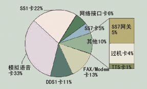 經(jīng)過對用戶抽樣調(diào)查,目前各用戶使用的語音卡類型如圖1分布。從圖1可以看出,語音卡目前應(yīng)用最多的還是模擬語音卡,比例為33%,其次是SS1卡,比例為22%,第三位的卡是傳真卡,比例為13%。