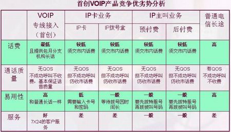 比業(yè)內(nèi)其他多種IP電話更具價(jià)格優(yōu)勢(shì)。每個(gè)長(zhǎng)途呼叫無(wú)論是否建立成功,都不收取本地市話費(fèi)用。對(duì)于國(guó)內(nèi)目前話務(wù)量集中的國(guó)際間通信,采用的資費(fèi)標(biāo)準(zhǔn)相對(duì)其他運(yùn)營(yíng)商具有價(jià)格優(yōu)勢(shì)。對(duì)于企業(yè)的Intranet Call,由于企業(yè)間不產(chǎn)生話費(fèi),更能夠節(jié)省大量的話務(wù)開支。