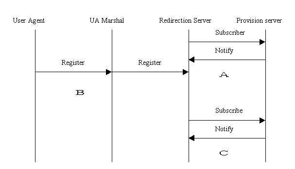1> 在A階段當(dāng)啟動Redirection Server(RS)的時候,RS向Provisioning Server(PS)發(fā)送SubScribe消息,取得合法的用戶列表;