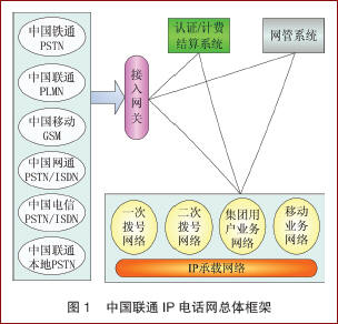 中國聯(lián)通IP電話網(wǎng)自1999年6月入運營以來,經(jīng)過一期、二期和三期工的建設,目前,網(wǎng)絡已覆蓋中國329個地市,E1端口規(guī)模超過1.8萬個,成為全球最的IP電話網(wǎng)絡。網(wǎng)絡的話務量已經(jīng)達到月近10億分鐘,已是世界上流量最大的電話網(wǎng)絡。中國聯(lián)通IP電話網(wǎng)總體框架圖1所示,包括IP承載網(wǎng)絡、業(yè)務網(wǎng)絡(包式括一次撥號業(yè)務網(wǎng)、二次撥號業(yè)務網(wǎng)、集團用戶業(yè)務網(wǎng)和移動用戶業(yè)務網(wǎng))、IP電話網(wǎng)絡管理設備(如計費結算系統(tǒng)、網(wǎng)管系統(tǒng)等)、與各類本地網(wǎng)絡連接的接入網(wǎng)關等部分。