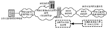 再次,VoIP低廉的價(jià)格除了其自身成本的優(yōu)勢(shì)外還有更深層的東西,那就是傳統(tǒng)的電信網(wǎng)間結(jié)算體系的缺陷。還是上面的例子,業(yè)務(wù)運(yùn)營(yíng)商B的VoIP可以“落地”到自己服務(wù)區(qū)域內(nèi)的PSTN網(wǎng)上,然后通過(guò)自己的長(zhǎng)途電話網(wǎng)傳送語(yǔ)音,最后與其他電信運(yùn)營(yíng)商的PSTN本地網(wǎng)進(jìn)行互聯(lián)來(lái)完成一次長(zhǎng)途通話過(guò)程。這也是國(guó)內(nèi)沒(méi)有本地網(wǎng)資源的運(yùn)營(yíng)商經(jīng)營(yíng)VoIP業(yè)務(wù)最常用的一種做法(通常這被作為新興運(yùn)營(yíng)商大舉搶占主導(dǎo)固網(wǎng)運(yùn)營(yíng)商市場(chǎng)的有效手段如圖2所示)。由于本地接入費(fèi)僅為0.06元/分鐘,因此只要業(yè)務(wù)運(yùn)營(yíng)商B只要將VoIP的價(jià)格設(shè)為0.07元/分鐘,在長(zhǎng)途電話網(wǎng)傳輸成本很低的情況下,他也可以實(shí)現(xiàn)盈利。從這個(gè)角度我們可以看出,VoIP的低資費(fèi)從根本上看可以說(shuō)是現(xiàn)行電話網(wǎng)網(wǎng)間結(jié)算費(fèi)過(guò)低造成的,是以“犧牲”本地網(wǎng)電信運(yùn)營(yíng)商的利益為代價(jià)而換來(lái)的,此網(wǎng)間結(jié)算機(jī)制勢(shì)必造成沒(méi)有本地網(wǎng)資源的虛擬運(yùn)營(yíng)商可以近乎無(wú)償?shù)卣加兄鲗?dǎo)運(yùn)營(yíng)商的Metcalfe價(jià)值,甚至可以借此進(jìn)行惡性價(jià)格戰(zhàn)來(lái)?yè)寠Z主導(dǎo)網(wǎng)絡(luò)運(yùn)營(yíng)商的用戶及收入,這樣必然會(huì)使主導(dǎo)網(wǎng)絡(luò)運(yùn)營(yíng)商在沒(méi)有積極性投入本地網(wǎng)建設(shè)和互聯(lián)網(wǎng)建設(shè)的同時(shí),對(duì)網(wǎng)間互聯(lián)設(shè)置種種障礙,結(jié)果無(wú)疑會(huì)導(dǎo)致整個(gè)VoIP產(chǎn)業(yè)的惡性發(fā)展。