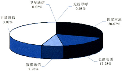 圖1 2006年1-2月的電信業(yè)務(wù)收入構(gòu)成