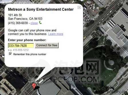 用戶在Google地圖上地位到某個(gè)商業(yè)機(jī)構(gòu)后,可以得到該機(jī)構(gòu)的電話號(hào)碼,當(dāng)用戶點(diǎn)擊搜索到機(jī)構(gòu)電話號(hào)碼旁邊的“呼叫”連接之后,系統(tǒng)會(huì)要求用戶輸入自己的電話號(hào)碼。用戶輸入完畢后點(diǎn)擊“免費(fèi)連接”按鈕,Google Maps就會(huì)呼叫用戶提供的號(hào)碼。自己的電話響起后,顯示的號(hào)碼不是Google的,而是所定位到機(jī)構(gòu)的電話。用戶接聽電話后,或者因?yàn)镚oogle Maps會(huì)把用戶電話接通到定位到的機(jī)構(gòu)那里,所以用戶會(huì)聽到與直接撥打該機(jī)構(gòu)電話相同的響聲,或者用戶會(huì)聽到自動(dòng)的語音提示要求用戶輸入“1”后便能接通電話。