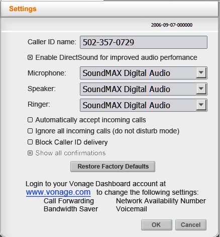 V-Phone非常易于使用。它預(yù)裝了Vonage Talk軟件。你要做的只是把它插入PC機(jī)上的一個USB插口,然后就可以撥打接聽電話了。