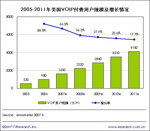 2011年美國VOIP付費(fèi)用戶規(guī)模將達(dá)4130萬戶