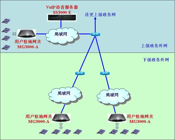 在電子政務(wù)網(wǎng)建設(shè)完成后,政府各級部門可以在其上建設(shè)自己的VoIP系統(tǒng),以實(shí)現(xiàn)轄區(qū)范圍內(nèi)“虛擬電話專網(wǎng)”的效果。在這個電話專網(wǎng)內(nèi),所有內(nèi)部電話都有自己設(shè)置的小號,他們之間通話都將免費(fèi),而不管這些電話間物理距離是多少。