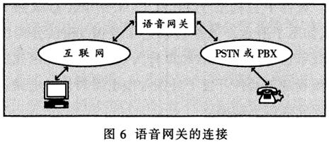 ——圖6為計算機(jī)到普通電話的通信方式。語音網(wǎng)關(guān)的一側(cè)與公眾電話網(wǎng)或用戶小交換機(jī)相連。在主叫方,它接收電話信令,將其數(shù)字化、壓縮、打包(語音包)并送到互聯(lián)網(wǎng)上;在被叫方,它從互聯(lián)網(wǎng)上接收語音包,解包、解壓并將其發(fā)送到公眾電話網(wǎng)或用戶小交換機(jī)上。