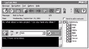 像ICQ、OICQ、MSN Messenger等即時通訊軟件必須登錄Internet后才能使用,并不支持局域網,而LanTalk Pro是一款局域網即時通訊的專用軟件,通過它你可以快速、方便地與同一局域網中的任何人進行實時交流。
